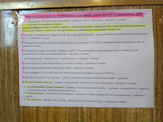 Сегодня был в паспортном столе в Макеевке (ДНР). Очередь люди занимают с 5 часов утра. Я приехал в 9:15 и был 59 в списке. В ЗАГСе, во всех местах, где делают фото на документы и ксерокопии людей тьма, все как будто с ума посходили))) В общем не знаю, было или нет, стену не листал, но вот информация по документам, которая висит в паспортном столе.